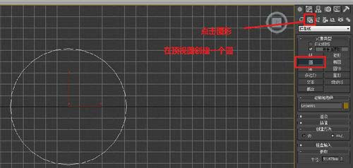 2、在創(chuàng)建面板點擊圖形,在最大化的頂視圖區(qū)創(chuàng)建一個標準圓。
