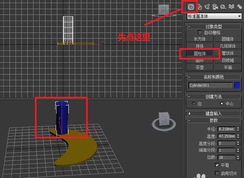 10、點擊創(chuàng)建面板-集合體-圓柱體,在頂視圖創(chuàng)建一個圓柱體。