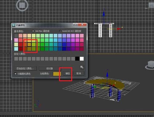 13、鼠標拉選整個茶幾選中,點擊顏色選項,選取一個類似木質(zhì)的顏色,確定。