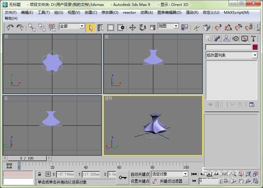 11、然后現在這個花瓶還沒旋轉,那么再回到變形的卷展欄在,點擊扭曲按鈕。