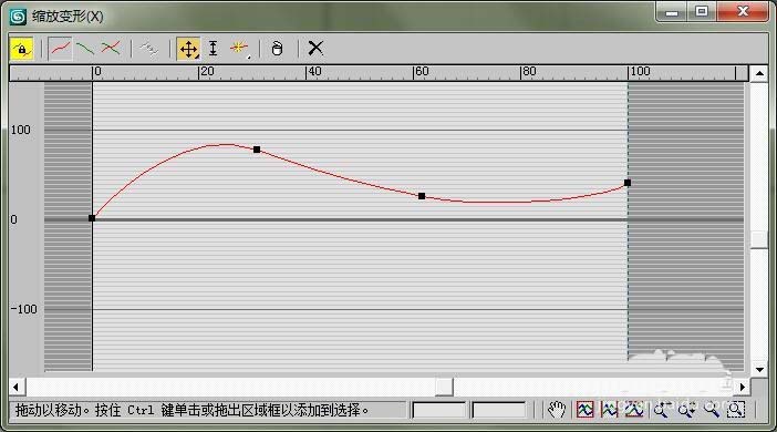 8、打開縮放變形的對話框,初始的縮放曲線是一條直線,可以調節線的形狀來改變圖形的形狀。
