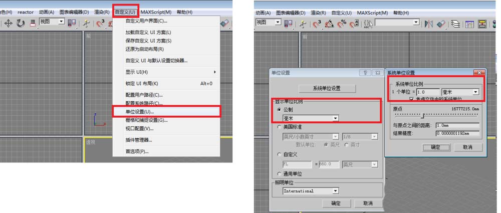 1、在建立模型之前,我們首先對單位進行設置,方便后續的操作。單擊自定義/單位設置,設置公制為毫米,再單擊系統單位設置,設置系統單位比例:1個單位=1毫米,設置完畢后單擊確定。