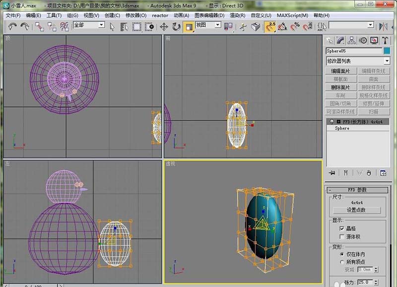 10、接下來做一對翅膀。也是畫一個球體。然后給球體加載一個FFD長方體的命令。