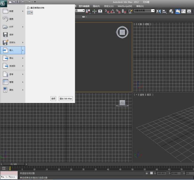 2、打開3d(我的是2012版),按G鍵將格線關閉;先點擊頂視圖(最好將其最大化,快捷鍵是alt+W),然后點擊3d左上角的按鈕(就是平時保存時按的那個)→點擊導入→找到剛才寫到桌面的“新塊”文件→點擊確定;3d會彈出一個對話框,直接點擊確定,文件就被導入進來了!