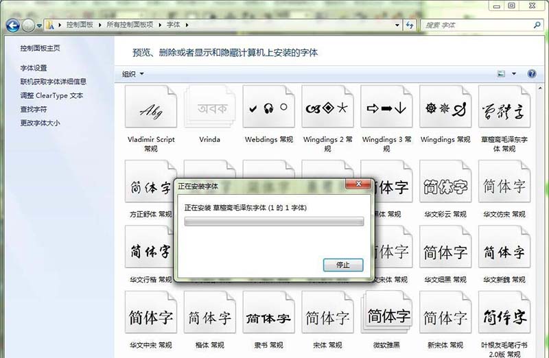 5、將下載的ttf文件字體復制這個字體文件夾里。系統(tǒng)會自動安裝字體