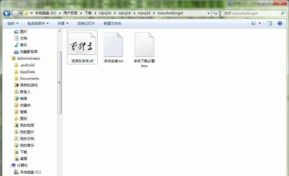 3、大家在網(wǎng)上自己下載相應的字體,我這里下載毛澤東毛筆字字體。是一個ttf格式文件