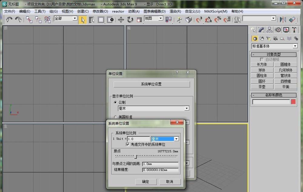 1、考慮到高爾夫球的大小,我們首先把3dmax的單位設置成毫米。