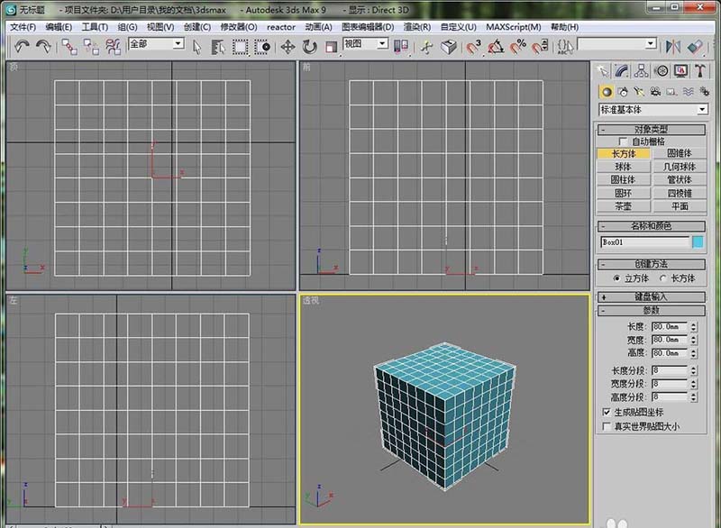 2、我們這里選擇用長方體來建一個高爾夫球。建一個80*80*80的長方體,分段都設置為8段
