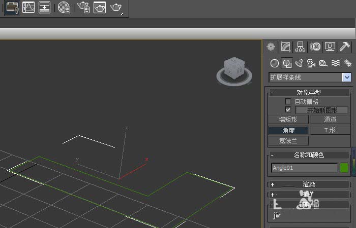 2、在【擴展樣條線】的面板上,鼠標左鍵單擊【擴展樣條線】下的(墻矩線),接著在透視圖中,拖動繪制一根墻矩線出來,如下圖所示。
