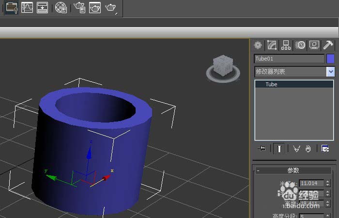 2、鼠標左鍵單擊【修改】面板,可直接修改管狀體,長、寬、高的參數值,修改后,在透視圖上的管狀體就發生改變,如下圖所示。