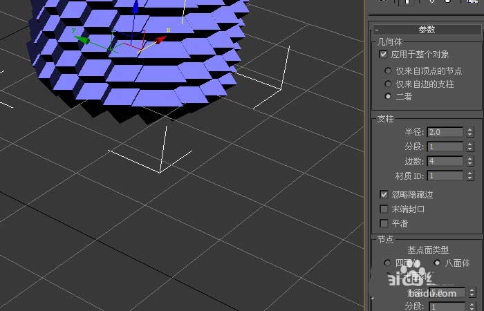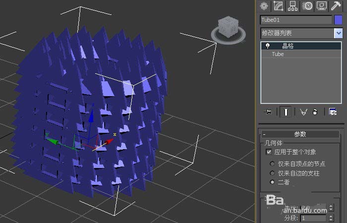 4、在【晶格】命令面板上,可看到管狀體發生了晶格的效果,四周的邊變成了晶格的效果,如下圖所示。