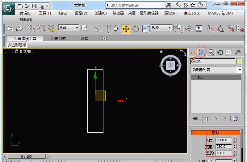 3、頂視圖畫個長方體,參數長1000,寬250,高180。
