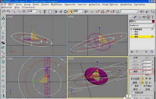 10、用修改曲線工具中的偏移工具,做出兩個曲線。同時把中間的曲線分離出來,使中間的線變?yōu)?strong>單獨(dú)的曲線。這個曲線將做路徑用。