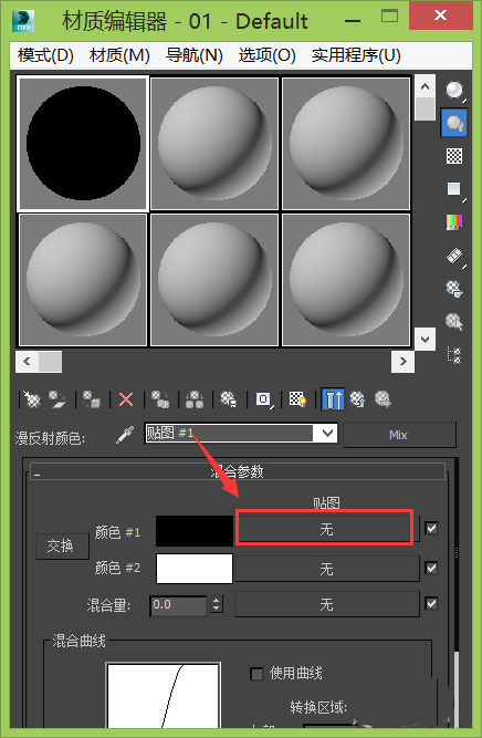 7、點擊混合選項,返回到上一層級,再找到顏色#1選項后的貼圖選擇框,如圖所示: