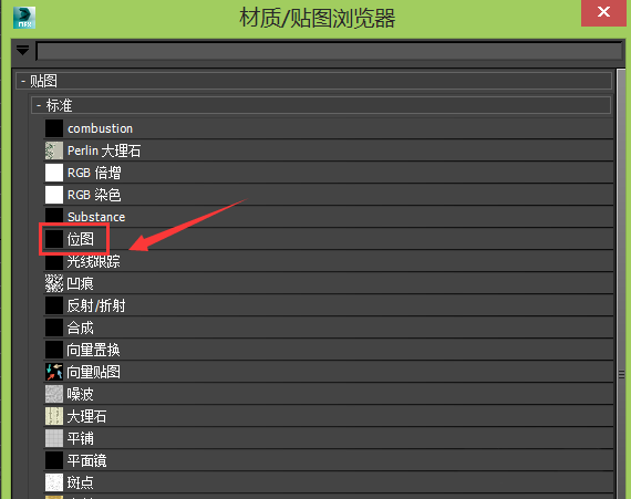 8、點擊貼圖選擇框在彈出的對話框內(nèi)選擇位圖選項,點擊位圖選項,在彈出的打開貼圖對話框內(nèi)找到我們的貼圖,如圖所示: