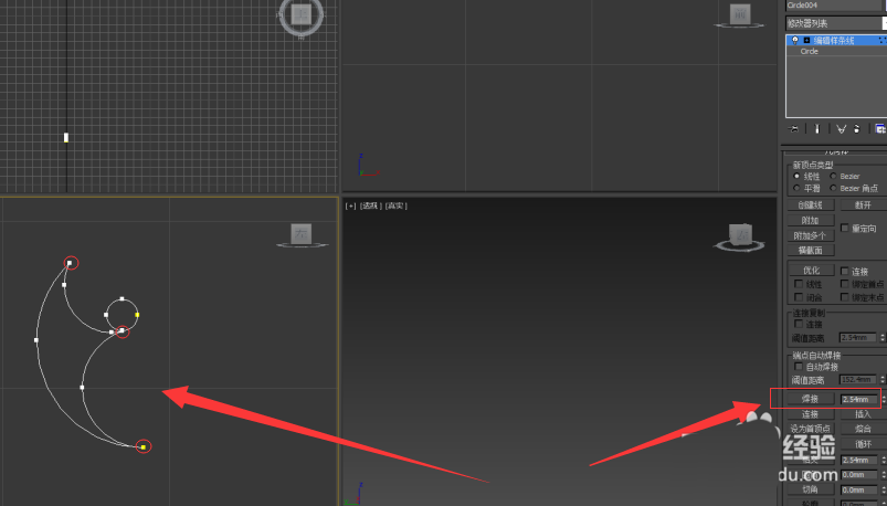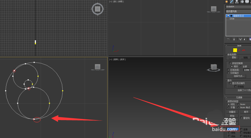 7、進入編輯樣條線修改器,使用“分離”工具將圓與其他線型分離(目的是便于后期材質制作使用);