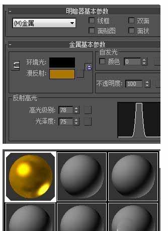 8、編輯材質球,設置參數如下,并賦予成組后轉為可編輯多邊形的酒壺。