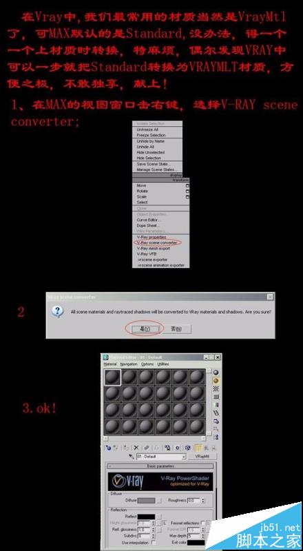 在vray ,中會有碰到默認材質standard,會影響渲染速度和出錯,解決辦法,是把這種材質轉換成vr材質。