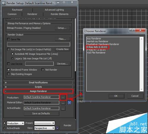 3、彈出對話框之后,我們選擇基本選項(英文是Common)卷展欄,拉到最下面,有個渲染器選擇,這里一定要注意選擇的是V-Ray Adv 2.10.01,而不是V-Ray RT 2.10.01,這兩個是不一樣的。