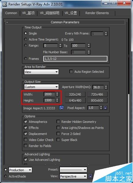 4、我們選擇好了渲染器之后就可以設置渲染大圖的出圖參數了,首先根據自己的需求設置出圖尺寸,建議不要太大,以防電腦卡死