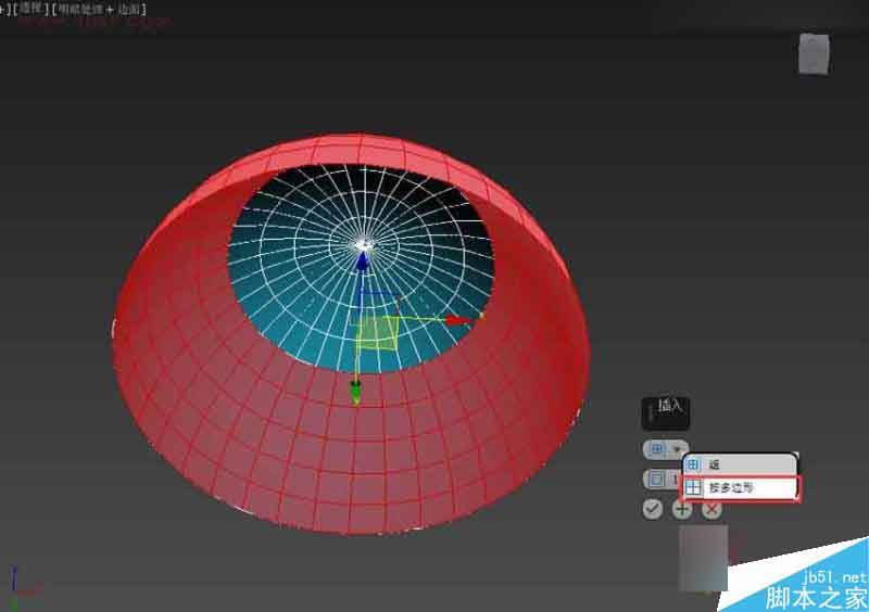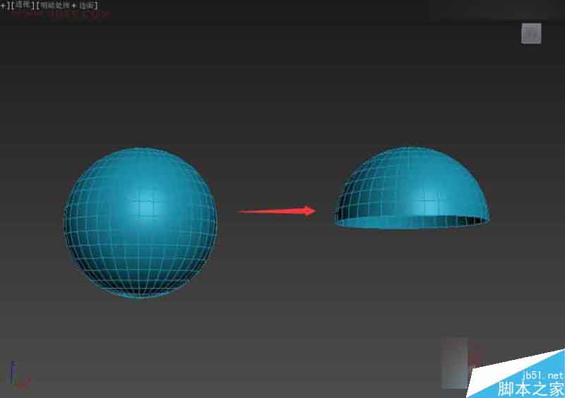 創建球體,轉成可編輯多邊形之后,刪除下半部分的球體.得到我們的半球.