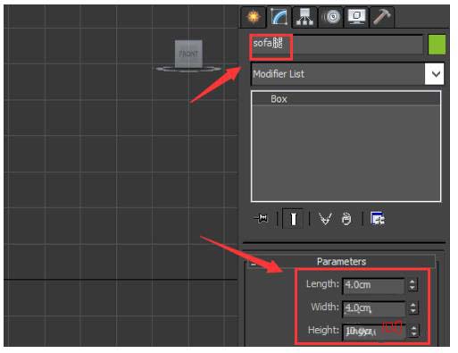 10、選擇創建的box物體在modify里修改名字為sofa腿,并調節參數如圖所示: