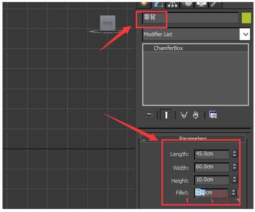 13、選擇這個物體在modify里修改名字為靠背,參數修改如圖所示,并調節其位置: