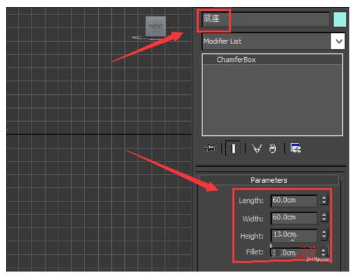 4、選擇這個底座,在modify里修改名字為底座,并調節參數如圖所示: