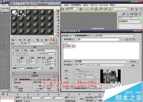 4、進入反射通道后,給它添加一種準備好的外景貼圖,如果你想獲得更出色的效果,可以嘗試使用HDR高動態貼圖,選擇好貼圖后,點返回轉到材質編輯器的父層級。接下來就比較簡單了,將設置好的材質賦予場景中的模型。