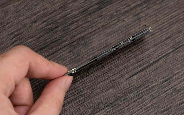 正反都帶有閃存顆粒,4顆閃存顆粒,1個(gè)主控、還有兩顆緩存Flash。