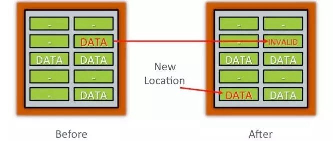 當失效的數據超過一定比例后,固態硬盤主控就需要集中整理,撿取所有有效數據另存它處,而將包含大量無效塊的整個block全部擦除,這個過程就叫垃圾回收。它是機械硬盤無需關心,而固態硬盤不得不做的一項任務。