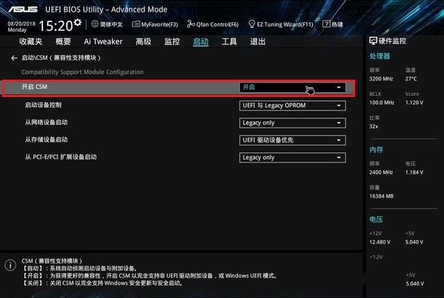 3.找到“CSM(兼容支持模塊)”設置選項;