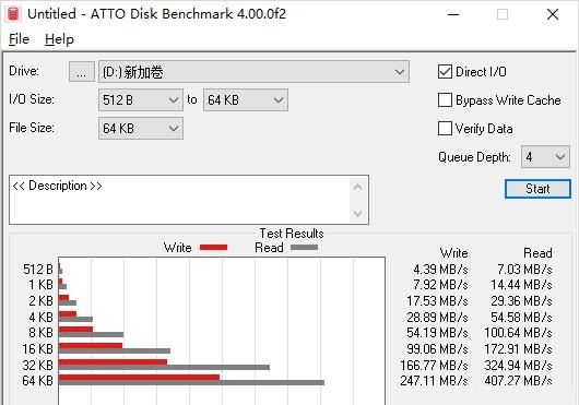 通常來說,機械硬盤的讀取和寫入速度基本一樣。但如果在ATTO測試中使用較小的測試區(qū)塊(64K),你會發(fā)現(xiàn)讀取的速度明顯比寫入更快,甚至會發(fā)生讀取400MB/s以上現(xiàn)象:正常是不可能有這么快的。