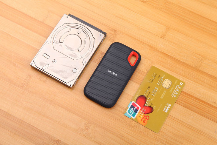 閃迪極速移動固態硬盤的體積非常小巧,僅與標準的信用卡尺寸相當,在 2.5 英寸機械硬盤的裸盤面前更是小巧伊人,更不必提 2.5 英寸移動硬盤。