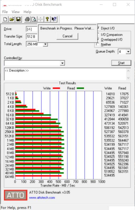 在單純測試順序讀寫的 ATTO 中,閃迪極速移動固態硬盤取得了 534.5MB/S 的寫入速度和 562.4MB/S 的讀取速度,性能表現非常出色。