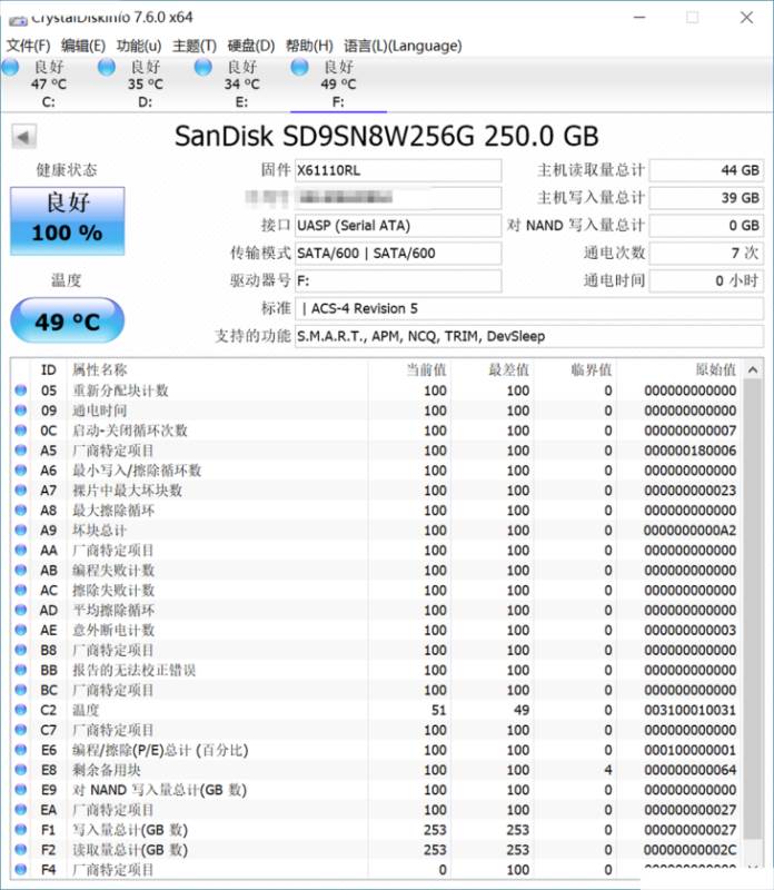 在 CrystalDiskMark 中,閃迪極速移動固態硬盤取得了 562.6MB/s 的讀取速度和 518.7MB/S 的寫入速度,4K 性能同樣非常搶眼。