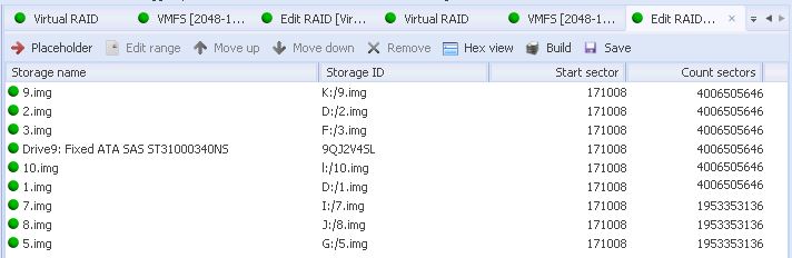 點擊Build進行重組。組好后,由于數據從1024*8=8192個扇區開始,若專業恢復工具沒有跳轉到此扇區的功能,那么剛組好的RAID必須和一個文件再進行一次Build重組操作。RAID的起始扇區(Start sectors)選擇8192,這個文件可以任意選擇起始扇區和大小大小(Count sectors),如圖8和圖9所示,圖10是組好的RAID-5。