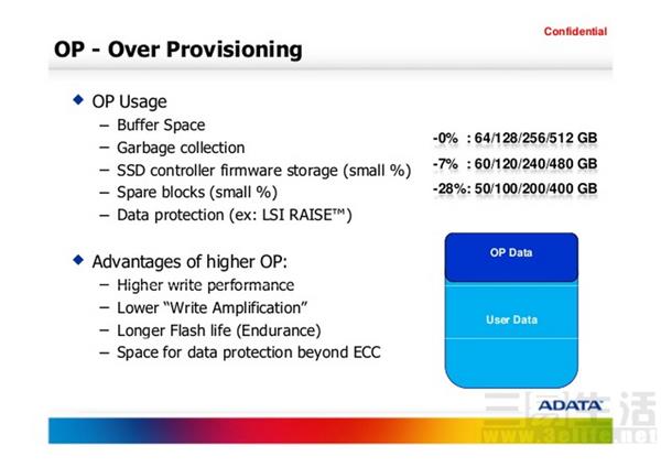 最后,現在不少SSD都支持“SLC工作模式”,即在SSD空余容量較多時,只使用多層閃存(MLC、TLC)的第一層,將它當做SLC閃存來工作。這種模式下SSD的壽命和性能都會有很大提升,但是如果剩余空間少于某個數值,那么SLC模式就會失效,SSD也就出現掉速。這個比率對于MLC來說是50%,對于TLC來說則是33.3%——也就是說,如果將一個1TB的TLC SSD預留667GB的空間作為OP,只使用其中的333GB,那么它的性能和壽命將會大幅提升——這當然有些浪費,但如果你很在意SSD的性能和穩定性,這樣的做法也不失為一種取巧。