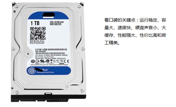 3、看口碑的關鍵點:運行穩定、容量大、速度快、硬盤聲音小、大緩存、性能強大、性價比高和做工精美。