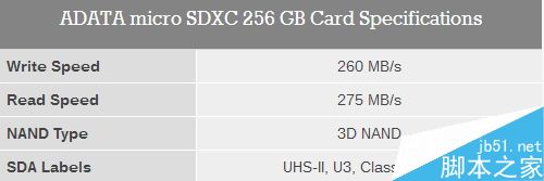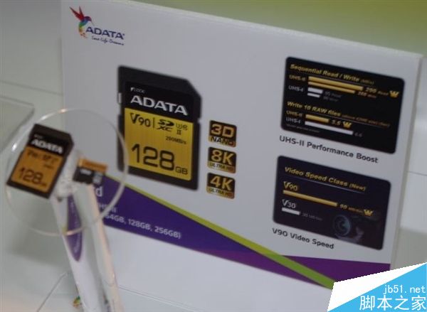威剛近日展示了旗下首款microSDXC存儲卡,容量256GB,同時卡速驚人,寫入260MB/s,讀取275MB/s,錄制4K甚至8K視頻不成問題。