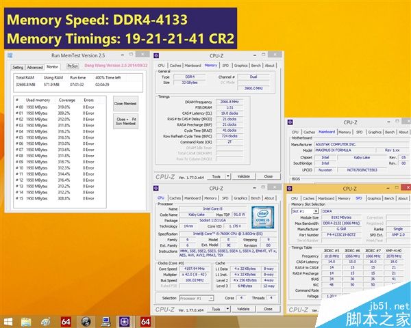 同時,芝奇稱,率先將將8GBx4套裝頻率帶入DDR4-4000MHz+,速度可達DDR4-4133MHz,CL19-21-21-41 32GB(8GBx4),電壓1.35V,也就是全球最快的32GB DDR4內存套裝。