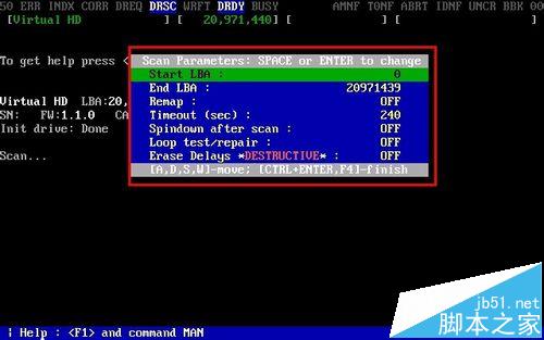 4、按一次“F4”后,會出現如下掃描對話框,顯示各項參數等等,全部默認即可。再按一次“F4”,開始掃描。