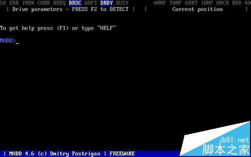 3、選擇好硬盤后,會出現MHDD提示符,即:MHDD>,在這種情況下都是可以輸入MHDD的命令來操作的,命令可以按“F1”來查看,這里就不細說了。MHDD的功能還是很多很不錯的,如低格、磁盤修復等等,我們主要用來檢測硬盤的功能,就等于要細看硬盤的每個簇,即進行磁盤的表面掃描,看有沒有什么異常的。那么,我們按“F4”,開始吧!