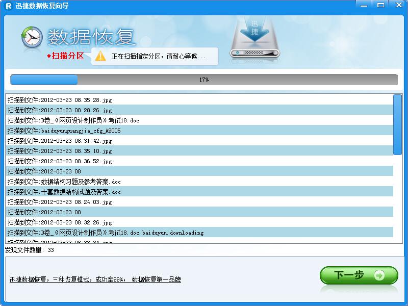 (3)恢復效果出色:強大的數據恢復能力搭配超線程深度掃描技術,使得迅捷數據恢復軟件能夠確保恢復出來的文件完整,真正實現百分之百數據恢復。