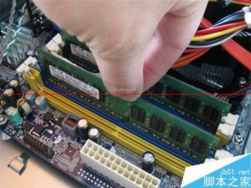 5、安裝,內存條上有個缺口對準卡槽內的突起,下壓上鎖扣固定。