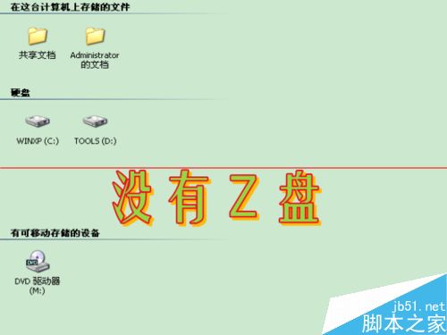 2、打開“我的電腦”,發現沒有創建的Z盤。