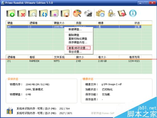 3、回到軟件界面,在“硬盤”選項中的磁盤上按右鍵,進入“查看/修改設置”。