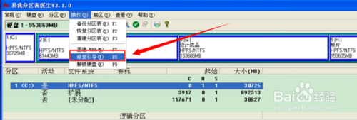 3、如果選擇“檢查分區”這樣的自動操作都無法修復,那就選擇交互修復,因為易我分區表醫生V3.0修復引導是它的主要功能。只要選擇“操作→修復引導”或直接按F8鍵,然后軟件就會對需要修復的分區進行檢查,并且在彈出的對話框中選擇“是”來進行修復。