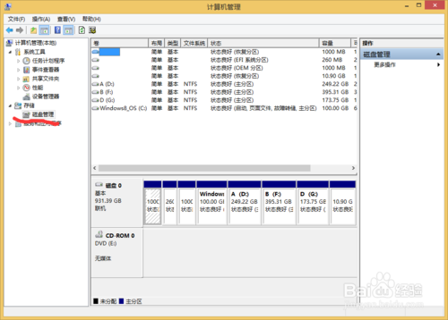 第二步,選擇磁盤管理,如下圖紅色線顯示的(不適合xp使用)因為它沒有呵呵