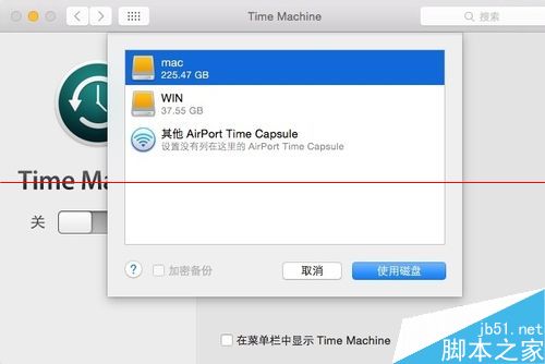 6、找到【系統(tǒng)偏好設(shè)置】-【Time Machine】-【選擇備份磁盤】-選擇分好的mac專區(qū),將當(dāng)期mac系統(tǒng)備份到mac專區(qū)。